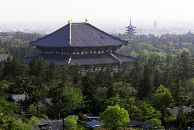 奈良観光の出発点といえば、やはり東大寺大仏殿です。世界最大級の木造建築として知られるこの建物は、足を踏み入れた瞬間から圧倒的なスケールで出迎えてくれます。内部に鎮座する盧舎那仏(奈良の大仏)は高さ約14.7メートル、重さ約250トンという途方もない大きさ。1300年以上前に建立されてから、何度も修復を繰り返しながら今も変わらず訪れる人々を迎えています。大仏の台座の蓮弁に刻まれた精緻な模様や、大仏の鼻の穴と同じ大きさとされる柱の穴をくぐる体験など、見どころは大仏だけではありません。境内の南大門にある運慶・快慶作の金剛力士像も必見。迫力満点の表情をぜひ間近で確かめてください。早朝に訪れると光の差し込み方も美しく、荘厳な雰囲気をより深く感じられます。