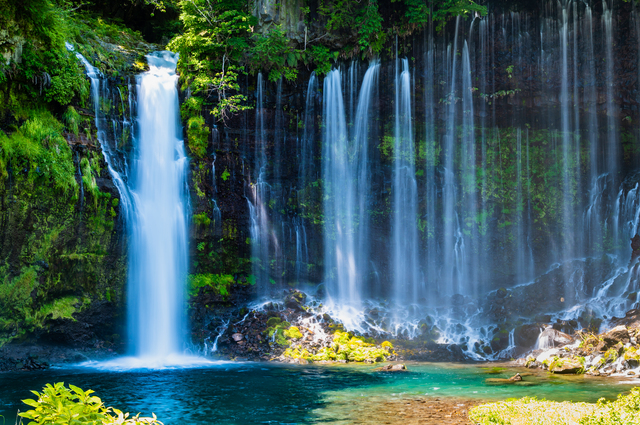 白糸の滝で富士山の湧き水が織りなす幻想的な絶景を間近に体感する