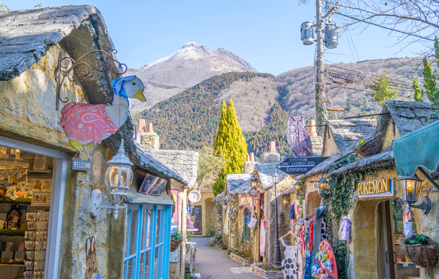 湯布院観光2日目は湯布院フローラルビレッジへ。湯の坪街道に近い場所に位置するこの施設は、コッツウォルズ地方(英国)の村をモチーフにした石造りの建物が並ぶファンタジックなエリアです。可愛らしい雑貨店・カフェ・アンティークショップが集まり、湯布院の中でも特に女性観光客に人気が高いスポット。敷地内にはフクロウカフェやエキゾチックアニマルと触れ合えるコーナーもあり、動物好きにもたまりません。フローラルビレッジのオリジナルグッズやハーブを使った製品もお土産として人気。湯布院の自然とヨーロッパの雰囲気が融合した独特の世界観を楽しんでください。