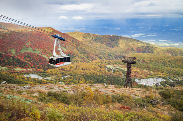 那須観光の定番スポット那須岳(茶臼岳)は、標高1915mの活火山で那須高原のシンボルです。山麓から山頂付近まで運んでくれる那須ロープウェイを利用すれば、体力に自信のない方でも気軽に高山の景観を楽しめます。ロープウェイ山頂駅付近からは那須連山や関東平野を一望する大パノラマが広がり、天気が良い日は遠く富士山まで見渡せます。秋の紅葉シーズンには山全体が赤やオレンジに染まり、息をのむ絶景が広がります。体力がある方は山頂付近までトレッキングも楽しめます。那須高原観光のハイライトとして、まず茶臼岳を目指しましょう。