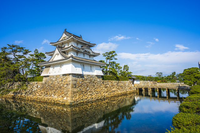 高松市街の中心部に位置する玉藻公園は、かつての高松城跡を整備した公園です。高松城は日本三大水城のひとつに数えられ、かつては城の堀に直接海水が引き込まれていた珍しい構造が特徴です。現在も月見櫓・水手御門・渡櫓などの重要文化財建築が残り、往時の面影を今に伝えています。園内の堀では鯛などの海の魚が泳いでおり、独特の環境を楽しめます。高松港のすぐそばにあるため、翌日の直島フェリー乗船前に立ち寄るのにも最適な観光スポットです。香川観光2日目のモデルコース