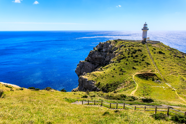 五島列島の夕日スポットとして特に有名なのが、大瀬崎灯台です。福江島の最西端に位置する白亜の灯台は断崖絶壁の上に立ち、眼下には東シナ海が広大に広がります。夕暮れ時には水平線に沈む真っ赤な夕日が海を染め上げ、この世のものとは思えないほど幻想的な絶景が広がります。大瀬崎灯台はNHKの連続テレビ小説「舞いあがれ!」のロケ地としても注目を集め、多くの観光客が訪れるようになりました。灯台へ向かうトレッキングコースも整備されており、大自然の中を歩きながら五島の雄大な海と空を満喫できます。五島列島観光の中でも感動度ナンバーワンのスポットです。
