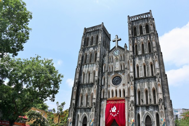 ホアンキエム湖の北側に広がるハノイ旧市街(36通り)は、中世から職人や商人が集まった歴史ある商業地区で、各通りが異なる商品を扱う独特の街並みが今も残っています。路地を歩きながら手工芸品や雑貨、衣料品をショッピングするのが定番の楽しみ方。旧市街でぜひ食べておきたいのがフォー(米麺のスープ)やバインミー(フランスパンサンドイッチ)。路上の屋台や地元のカフェで食べるベトナム料理は本場の味で格別のおいしさです。ハノイ観光の定番として、旧市街の食と買い物を思い切り楽しんでみてください。ハノイ大教会とフレンチクォーターでコロニアルな街並みを楽しむ