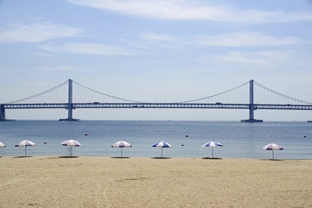 海雲台エリアを堪能した後は、地下鉄で約15分の広安里ビーチへ移動しましょう。広安里の最大の魅力は、目の前にどーんとそびえる広安大橋(ダイヤモンドブリッジ)の圧倒的な存在感です。ビーチ沿いには個性豊かなカフェが軒を連ねており、テラス席から橋と海を眺めながら過ごすひとときは最高の贅沢。釜山観光モデルコースの中でも、ゆったりとした時間を楽しめるスポットとして外せません。夜になると広安大橋が色とりどりにライトアップされ、昼とはまったく違うロマンチックな表情を見せてくれます。周辺にはセンタムシティの新世界百貨店や映画の殿堂など、ショッピングやカルチャーを楽しめる施設も充実。お土産の買い忘れがあればここで調達するのも良いでしょう。釜山観光の思い出を振り返りながら、のんびりカフェで過ごす午後のひとときをお楽しみください。