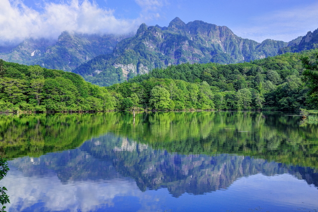鏡池で戸隠連峰を映す神秘の水面に出会う