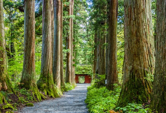 2日目のハイライトは戸隠神社奥社への参拝です。戸隠神社は奥社・中社・宝光社・九頭龍社・火之御子社の五社からなる歴史ある神社で、中でも奥社は最も神聖な場所とされています。奥社への参道は約2kmの道のり。入口の大鳥居をくぐり、しばらく歩くと現れるのが圧巻の杉並木です。樹齢約400年、高さ30mを超える巨木が参道の両側にそびえ立ち、まるで緑のトンネルのよう。木漏れ日が差し込む幻想的な光景は、多くの写真愛好家をも魅了しています。参道の途中には茅葺き屋根の随神門があり、ここから先はさらに神秘的な雰囲気が増していきます。片道約40分の道のりですが、自然の中を歩く気持ちよさで疲れを感じません。奥社にたどり着いたときの達成感と荘厳さは格別です。