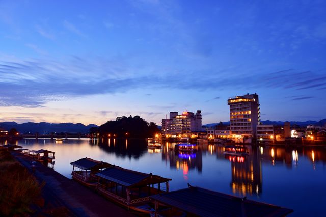1日目の締めくくりは、日田温泉でゆったりと過ごしましょう。日田市街地を流れる三隈川(みくまがわ)沿いに温泉旅館が並ぶ日田温泉は、川のせせらぎを聞きながら入浴できる贅沢な環境が魅力です。泉質は肌にやさしい単純温泉で、じんわりと体を温めてくれます。夕食には日田の清らかな水で育った鮎の塩焼きや、地元産の野菜を使った会席料理を堪能できる宿が多く、日田の食の豊かさを実感できるでしょう。夏場(5月下旬〜10月)であれば、三隈川に浮かぶ屋形船での夕涼みや、伝統の鵜飼い見物も見逃せません。川面に映る篝火の幻想的な光景は、日田の夏の夜を彩る風物詩です。温泉と美食、そして川沿いの風情に癒されながら、日田の夜をのんびりお過ごしください。