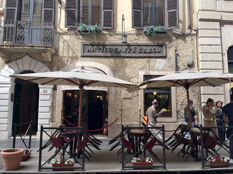 ポポロ広場からスペイン広場方面へ歩きながら、ローマの老舗カフェ巡りを楽しみましょう。コンドッティ通りにあるアンティコ・カフェ・グレコは1760年創業で、ゲーテやアンデルセンなど多くの文豪に愛されたローマ最古級のカフェです。大理石のテーブルと赤いベルベットの椅子が並ぶ店内は、まるで美術館のような優雅な雰囲気が漂います。パンテオン近くのサンテウスタキオ・イル・カフェは秘伝の製法で淹れる「グラン・カフェ」が名物で、濃厚でクリーミーな味わいが絶品です。同じくパンテオン近くのタッツァ・ドーロではコーヒーのグラニータ(シャーベット状のドリンク)が人気を集めています。イタリアのカフェではカウンターで立ち飲みすれば1〜2ユーロで楽しめますが、テーブル席は追加料金がかかります。【14:00】サンタ・マリア・マッジョーレ大聖堂の黄金モザイクに見惚れる