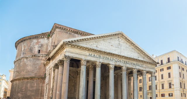サンタンジェロ城から南へ徒歩約10分、ローマで最も美しい広場のひとつとされるナヴォーナ広場に到着します。広場の中心にそびえるのは、バロック芸術の巨匠ベルニーニが手がけた「四大河の噴水」です。ナイル川、ガンジス川、ドナウ川、ラプラタ川を擬人化した力強い彫像が、高さ約16mのオベリスクを支える姿は迫力満点。広場の両端にも「ムーア人の噴水」と「ネプチューンの噴水」が配置されています。周囲にはカフェやレストランが立ち並んでいるので、テラス席でランチ休憩をとるのにぴったりです。入場無料で24時間見学可能なので、大道芸人やストリートアーティストで賑わう昼間の雰囲気を楽しみましょう。【15:30】パンテオンで古代ローマの建築技術に驚く