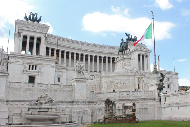 2日目の締めくくりは、ヴェネツィア広場に面してそびえ立つヴィットリオ・エマヌエーレ2世記念堂です。イタリア統一の立役者であるエマヌエーレ2世を称えて建てられた白亜の巨大建築物は、その壮大さからローマっ子に「ウエディングケーキ」や「タイプライター」と呼ばれています。1階部分は無料で見学でき、内部にはリソルジメント博物館もあります。屋上テラスへはエレベーター(7ユーロ)で上がることができ、コロッセオからサン・ピエトロ大聖堂まで、ローマ市街を360度見渡せるパノラマは圧巻です。夕暮れ時に訪れると、オレンジ色に染まるローマの街並みを一望でき、忘れられない景色が待っています。ローマ観光3日目のモデルコース:穴場スポット&ショッピング