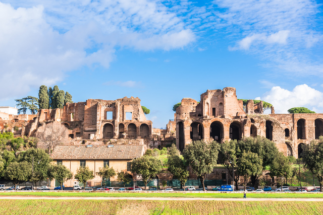 ローマ観光モデルコース2日目の朝は、ローマのシンボルであるコロッセオからスタートです。約2000年前に建てられた世界最大の円形闘技場は、最盛期には約5万人もの観客を収容し、剣闘士の戦いや猛獣との闘いが繰り広げられていました。現在も残る巨大なアーチ構造を見上げると、古代ローマの建築技術のすごさを肌で感じられます。入場料は18ユーロからで、フォロ・ロマーノとパラティーノの丘との共通チケットとなっています。営業時間は季節によって変動し、最終入場は閉館の1時間前です。事前のオンライン予約は必須で、公式サイトは約30日前から予約可能。地下通路やアリーナフロアを見学できるガイド付きツアー(24ユーロ)もおすすめです。【11:00】フォロ・ロマーノとパラティーノの丘で古代都市を歩く