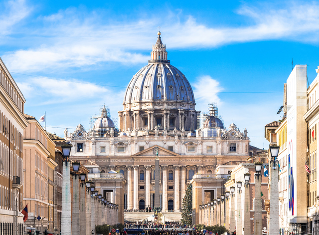 ローマ観光モデルコースの最初を飾るのは、世界最大級の美術館であるバチカン美術館です。全長7kmにも及ぶ展示回廊には、ミケランジェロが描いたシスティーナ礼拝堂の「最後の審判」やラファエロの間の壁画など、ルネサンスを代表する傑作がずらりと並びます。見どころが膨大なため、所要時間は最低でも2〜3時間を見ておきましょう。入場料は大人20ユーロ、7〜18歳は8ユーロです。営業時間は8:00〜20:00で最終入場は18:00となっています。公式サイトからの事前オンライン予約で入場列をスキップできるため、朝イチの時間帯を予約して混雑を回避するのがおすすめです。毎月最終日曜日は入場無料となりますが、その分大変混雑します。【11:30】サン・ピエトロ大聖堂で壮大なクーポラを見上げる