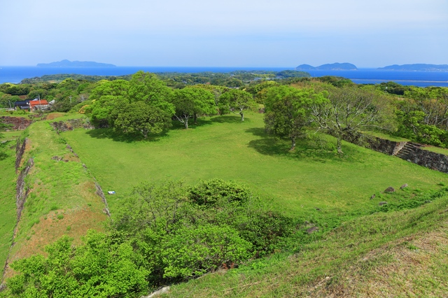呼子朝市を楽しんだ後は、呼子に来たらぜひ味わいたいイカの活造りをいただきましょう。注文を受けてから職人がさばく活造りは、透き通った身が美しく、コリコリとした食感と甘みが格別です。人気店の「河太郎」呼子店では、いか活造り定食が2,900円(税込)で楽しめます。目の前のいけすから取り出した新鮮なイカを、熟練の職人が手際よくさばいてくれます。活造りを味わった後のゲソは天ぷらにしてもらえるので、一杯で二度おいしい贅沢な体験です。そのほか「いか本家」なども地元で評判の名店です。11時を過ぎると混雑が始まるため、10時頃の早めの来店がおすすめです。予算は1人2,000円から3,500円程度を見ておくとよいでしょう。【11:30】名護屋城跡で豊臣秀吉の壮大な歴史に触れる