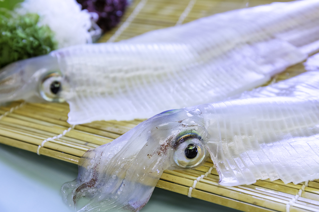 2日目の朝は日本三大朝市のひとつ「呼子朝市」からスタートします。呼子の松浦町商店街で元日を除く毎日開催されており、営業時間は朝7時30分から12時までです。平日は約50店、日曜・祝日には約70店もの露店が約200メートルの通りにずらりと並び、新鮮な魚介類や干物、野菜、加工品などが所狭しと並べられます。食べ歩きグルメも充実しており、揚げたてサクサクのいかしゅうまい(350円)やイカバーガー(350円)は外せません。注文を受けてから揚げるいかしゅうまいは、外はカリッと中はプリプリの食感が絶品です。ベストタイムは8時30分から9時30分頃で、この時間帯がもっとも活気にあふれています。地元のお母さんたちとの会話も楽しみながら、呼子の朝を満喫してください。【10:00】呼子名物イカの活造りで贅沢ランチを堪能する