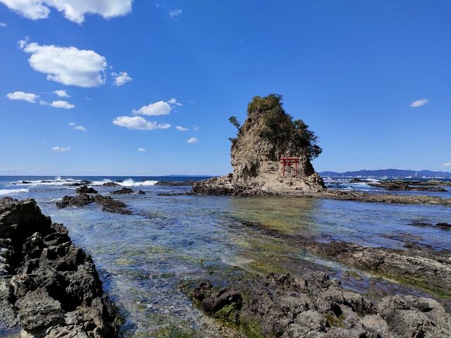 鯛の浦から車で約15分、太海エリアにある仁右衛門島は南房総の海に浮かぶ約30,000平方メートルの小島です。この島の最大の特徴は、鎌倉時代から平野家がたった一戸だけ住み続けているという全国的にも極めて珍しい島であること。島へは二丁櫓の手こぎ渡し舟で約5分の船旅。エンジンのない渡し舟に揺られる体験は、それだけで非日常感たっぷりです。島内には松尾芭蕉ゆかりの句碑や歌碑、源頼朝が隠れたと伝わる洞窟、神社などが点在し、散策しながら歴史ロマンを感じられます。渡船料は大人1,350円、中学生1,050円、小学生950円(入島料込み)。所要時間は島内散策を含めて約1時間が目安です。【13:00】地魚たっぷりの海鮮ランチで鴨川グルメを満喫