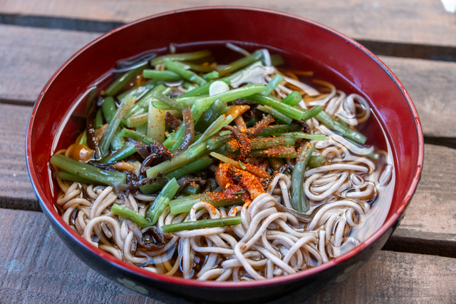 大山観光モデルコースの最初に訪れたいのが、奈良時代に創建された約1300年の歴史を持つ古刹・大山寺です。かつては100を超える寺院と3000人以上の僧兵を擁し、比叡山や高野山にも劣らない修行道場として栄えました。本堂では大山の守り本尊である地蔵菩薩を拝観できます(拝観料300円)。大山寺から杉並木の参道を進むと、大神山神社奥宮へ。自然石を敷きつめた約700mの参道は日本最長の自然石参道ともいわれ、荘厳な雰囲気が漂います。権現造の社殿は国の重要文化財に指定されており、江戸時代後期を代表する見事な神社建築です。所要時間は両方合わせて約90分を見ておくとよいでしょう。【11:30】大山参道で名物の大山そば・大山おこわを堪能