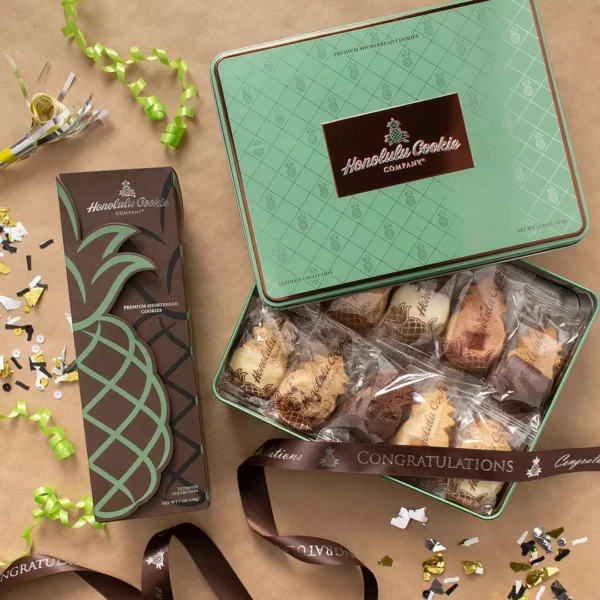 ビッグアイランドキャンディーズは1977年にハワイ島ヒロで創業した老舗です。「手作り」にこだわり続ける姿勢が特徴で、工場では一つひとつ丁寧に焼き上げています。看板商品のショートブレッドクッキーはバターの風味が豊かで、ホノルルクッキーと比べるとよりリッチで濃厚な味わいが楽しめます。パイナップル風味のバタークッキーにチョコレートをディップしたタイプが人気で、季節限定フレーバーも登場します。オアフ島ではアラモアナセンター1階のセンターステージ付近に直営店があり、試食しながらお気に入りを選べます。ギフトボックスのデザインも上品で、特別な方へのお土産におすすめです。ザ・クッキー・コーナー|地元紙6年連続No.1の実力