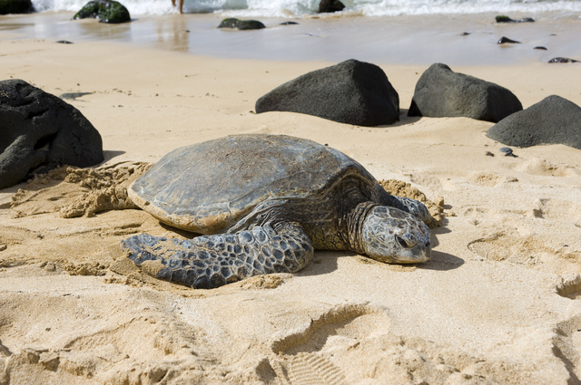 ドール・プランテーションからさらに北へ車で約20分、ハレイワタウンに到着します。ノースショア観光のハイライトともいえるこの街で、まず味わいたいのがハワイ名物ガーリックシュリンプです。なかでも元祖として名高いジョバンニ・シュリンプトラックは、落書きだらけの白いトラックが目印。プリプリのエビにガーリックバターが絡んだスキャンピは、1プレート約15ドルで大満足のボリュームです。食後は、サーファーの聖地らしいサーフショップやアートギャラリーが立ち並ぶハレイワの街を散策しましょう。デザートにはマツモト・シェイブアイスのかき氷がおすすめ。カラフルなシロップがかかったシェイブアイスは、SNS映えもするハワイの定番スイーツです。のんびりとした空気の中で過ごすノースショアの時間は、ワイキキとは違った魅力にあふれています。【午後】ラニアケアビーチで野生のウミガメに出会う