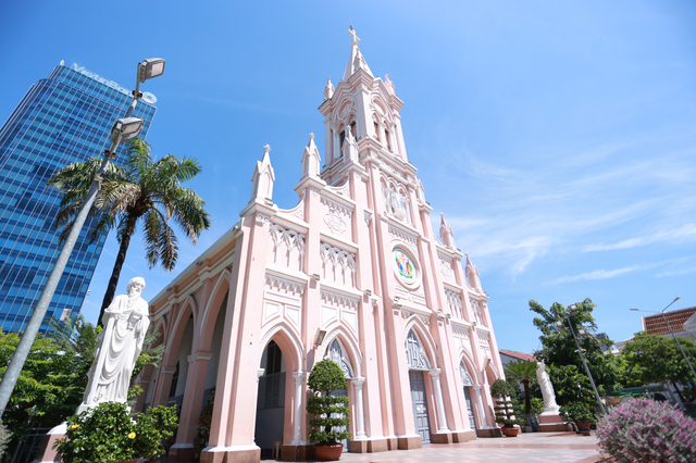 【15:30】ダナン大聖堂でピンク色のフォトジェニックな教会を見学