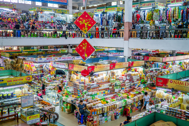 旅の最後に立ち寄りたいのが、地元民が通うローカル市場・コン市場です。ハン市場に比べて観光客が少なく、よりローカルな雰囲気を味わえるのが魅力。ベトナムコーヒーやライム塩胡椒、ココナッツオイル、ドライフルーツなど、ばらまき用のお土産を探すのにぴったりのスポットです。営業時間は6:00〜20:00で、市場内の食堂エリアではブンチャーやフォーなどローカルフードも楽しめます。空港からも近い立地なので、最終日のお土産買い足しに便利。買い物を済ませたら、ホテルでチェックアウトしてダナン国際空港へ向かいましょう。空港まではGrabで約15分です。ダナン観光モデルコースを目的別にアレンジする方法