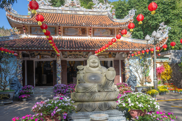 ダナン市内から車で約20分、大理石でできた5つの山からなる五行山(マーブルマウンテン)はダナン随一のパワースポットです。観光客に開放されているのは水山(トゥイソン)で、神秘的な洞窟の中に祀られた仏像や寺院、そして山頂の展望台からダナンの街並みとミーケビーチを一望できる絶景が見どころとなっています。入場料は40,000VND(約240円)と非常にリーズナブル。エレベーター(片道15,000VND)で山頂付近まで上り、階段で下りてくるルートが体力的にもおすすめです。営業時間は7:00〜17:00で、所要時間は約2時間。洞窟内は足場が滑りやすい箇所もあるため、歩きやすい靴で訪問しましょう。【12:00】世界遺産ホイアン旧市街でベトナム名物ランチ