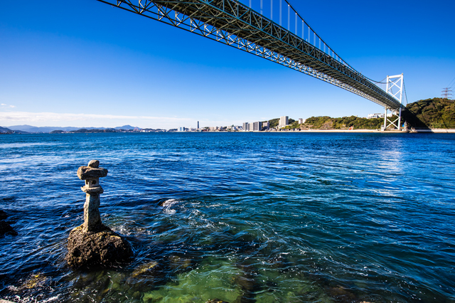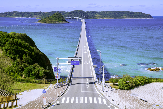 2日目の下関観光モデルコースは、午前中に角島方面へ絶景ドライブ、午後は長府エリアで歴史散策というメリハリのあるプランです。角島大橋は午前中の順光で撮影すると、コバルトブルーの海が一段と美しく映えます。下関市街から角島大橋までは車で約70分。ドライブを楽しんだ後は長府エリアへ移動し、毛利氏の城下町として栄えた風情ある町並みをのんびり散策しましょう。長府は下関駅から車で約15分とアクセスも良好です。最後は唐戸桟橋から連絡船に乗って巌流島へ渡り、旅の思い出を締めくくります。【9:00】角島大橋でコバルトブルーの絶景ドライブを楽しむ