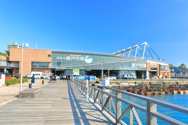 下関観光モデルコースの最初のスポットは、「下関の台所」と呼ばれる唐戸市場です。金・土・日曜と祝日に開催される「活きいき馬関街」では、地元の仲卸業者が握り寿司やふく汁、海鮮丼を市場ならではの価格で提供しています。ネタの鮮度は抜群で、目の前で握ってもらったお寿司をその場で味わう体験は格別です。営業時間は金・土曜が10:00〜15:00、日曜・祝日が8:00〜15:00。ネタがなくなり次第終了する店舗もあるので、早めの来場がおすすめです。市場に隣接するカモンワーフにはレストランやお土産店も充実しており、食後の散策にもぴったりです。【11:30】海響館で世界最大級のふぐ展示を見学する